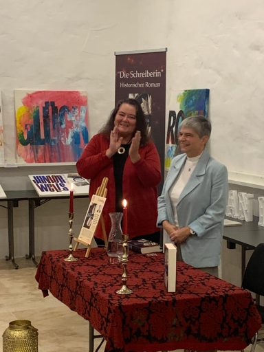 Kerzen, Blumen, Bücher, Tinte und Feder - ein stimmiges Ambiente für die Lesung aus meinem Roman "Die Schreiberin" in Eppelborn. Etwa 30 Gäste lauschten gespannt dem Schicksal der Clara Hätzlerin. Es war eine sehr harmonische Lesung: gespannte Erwartung zu Beginn, viele interessierte Fragen zwischendurch und positive Rückmeldungen am Ende.