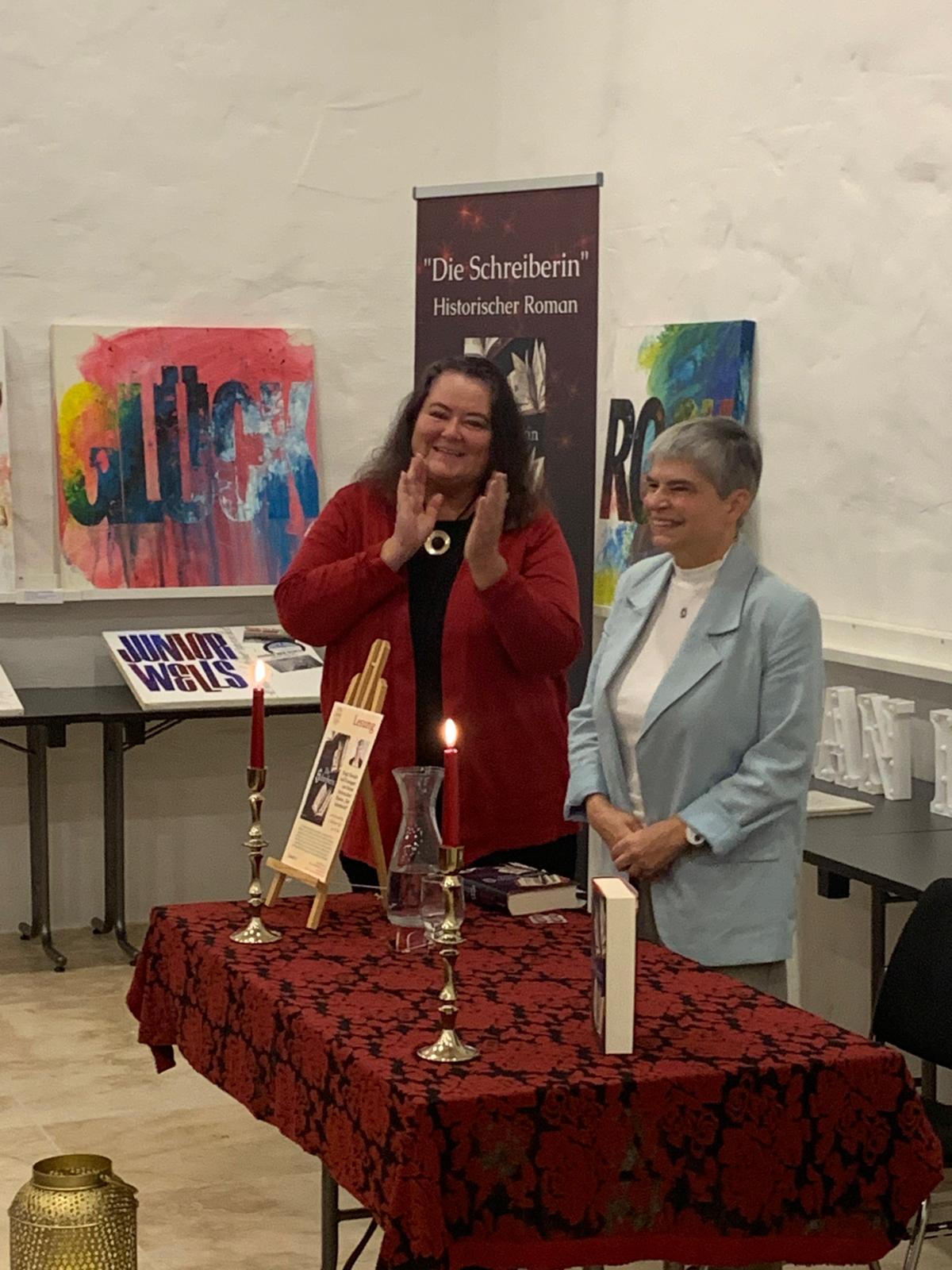 Kerzen, Blumen, Bücher, Tinte und Feder - ein stimmiges Ambiente für die Lesung aus meinem Roman "Die Schreiberin" in Eppelborn. Etwa 30 Gäste lauschten gespannt dem Schicksal der Clara Hätzlerin. Es war eine sehr harmonische Lesung: gespannte Erwartung zu Beginn, viele interessierte Fragen zwischendurch und positive Rückmeldungen am Ende.