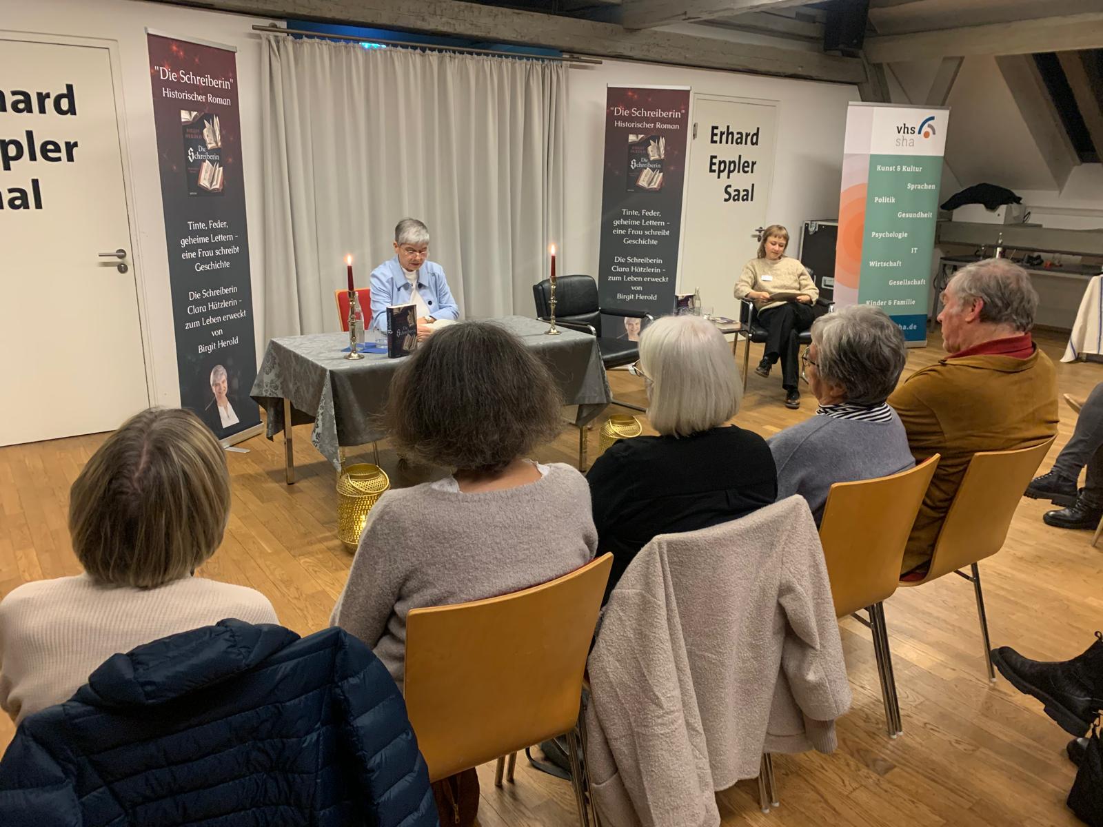Zum einen die Heimtstadt meiner Großeltern, zum anderen aber eine der am schönsten erhaltenen historischen Städte mit Gebäuden vom frühen MIttelalter bis zur Barockzeit. Bei der VHS stellte ich meinen Roman vor im Gespräch mit der großartig vorbereiteten und inspirierend frisch moderierenden Mona Henschel. Spannend, wie immer neue Aspekte meiner Geschichte in den Gesprächen bei den Lesungen entstehen. Enthusiasmus für das Schreiben, Selbstbestimmung der Frau, Scham und öffentliche Bestrafung - und das vor historisch versiertem Publikum.