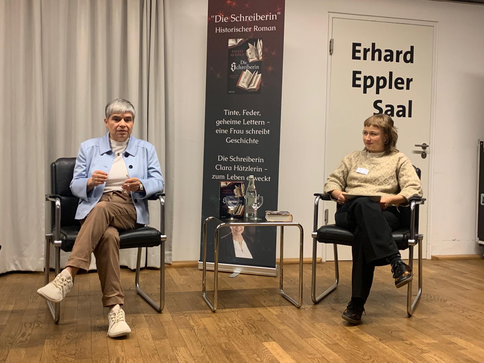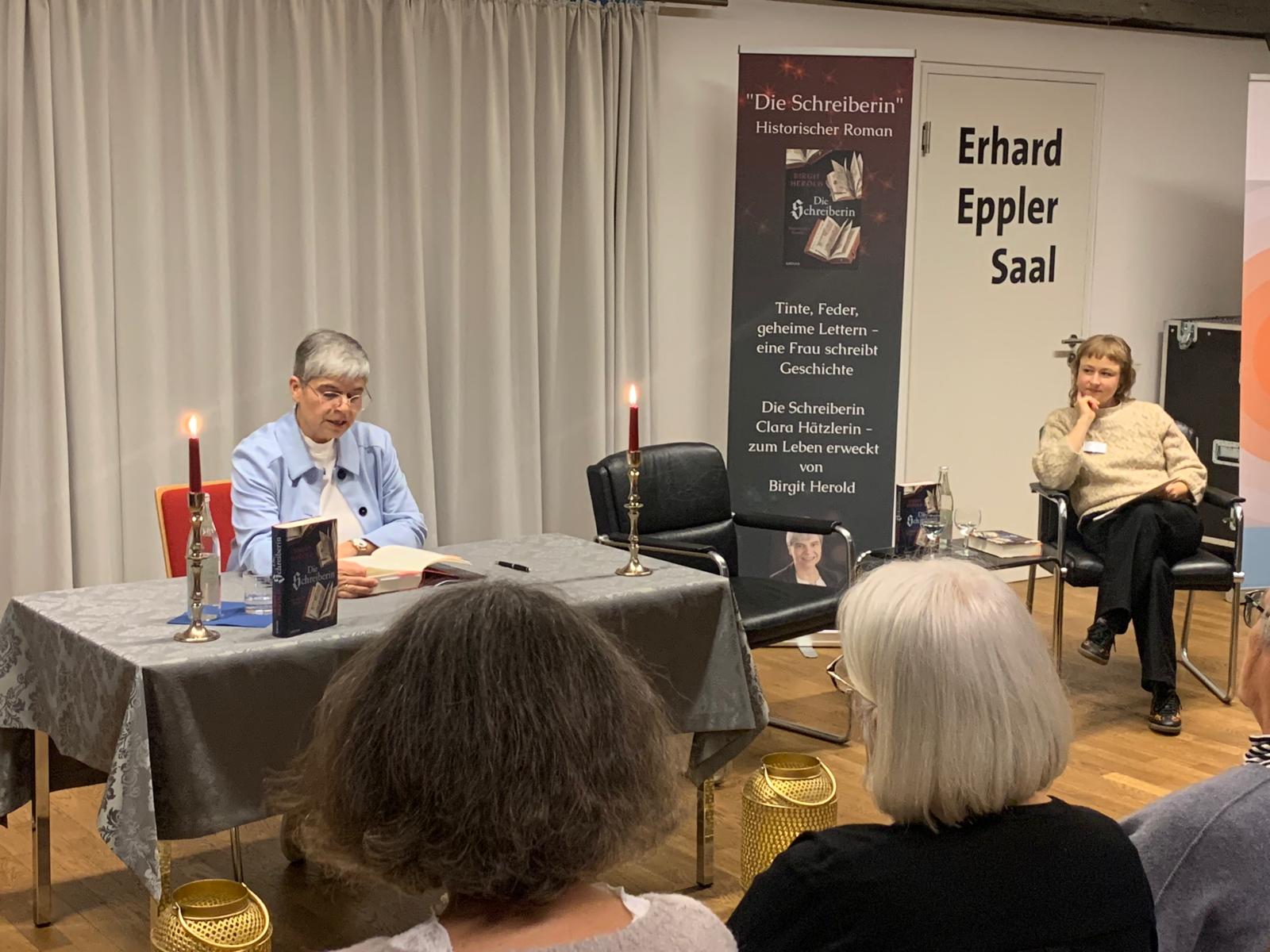 Es war ein wunderschöner Abend in den historischen Gemäuern der Bettinger Mühle. Anne Treib von der Buchhandlung Anne Treib Buch & Papier in Lebach begrüßte die über 80 Gäste, Dr. Cordelia Borchardt von den S. Fischer Verlagen erzählte spannend den Weg vom Manuskript zum Buch, dann durfte ich aus meinem Roman lesen, und Dr. Peter Kleiß stellte mir viele Fragen zu Clara Hätzlerin, zu den historischen Hintergründen, zu den Recherchen für das Buch. Ich war sehr glücklich, zum ersten Mal mit Leser:innen gemeinsam über das Buch reden zu können und signierte viele Exemplare. Eine rundum gelungene Veranstaltung - mein Dank geht an alle Helfer:innen und Mitwirkende!